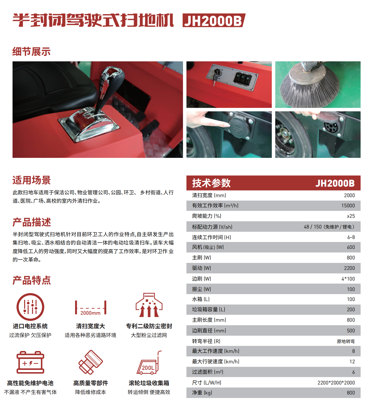 半封閉型駕駛式掃地機針對目前環衛工人的作業特點,自主研發生產出集掃地、吸塵、酒水相結合的自動清潔一體的電動垃圾清掃車。該車大幅度降低工人的勞動強度,同時又大幅度的提高了工作效率,是對環衛作 業的一次革命。