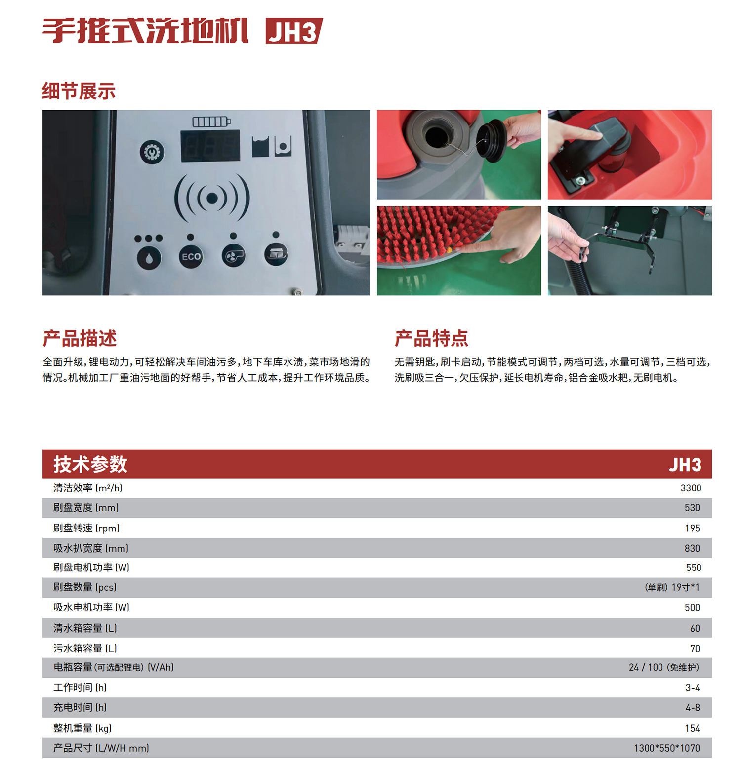 全面升級,鋰電動力,可輕松解決車間油污多,地下車庫水漬,菜市場地滑的情況。機械加工廠重油污地面的好幫手,節省人工成本,提升工作環境品質。