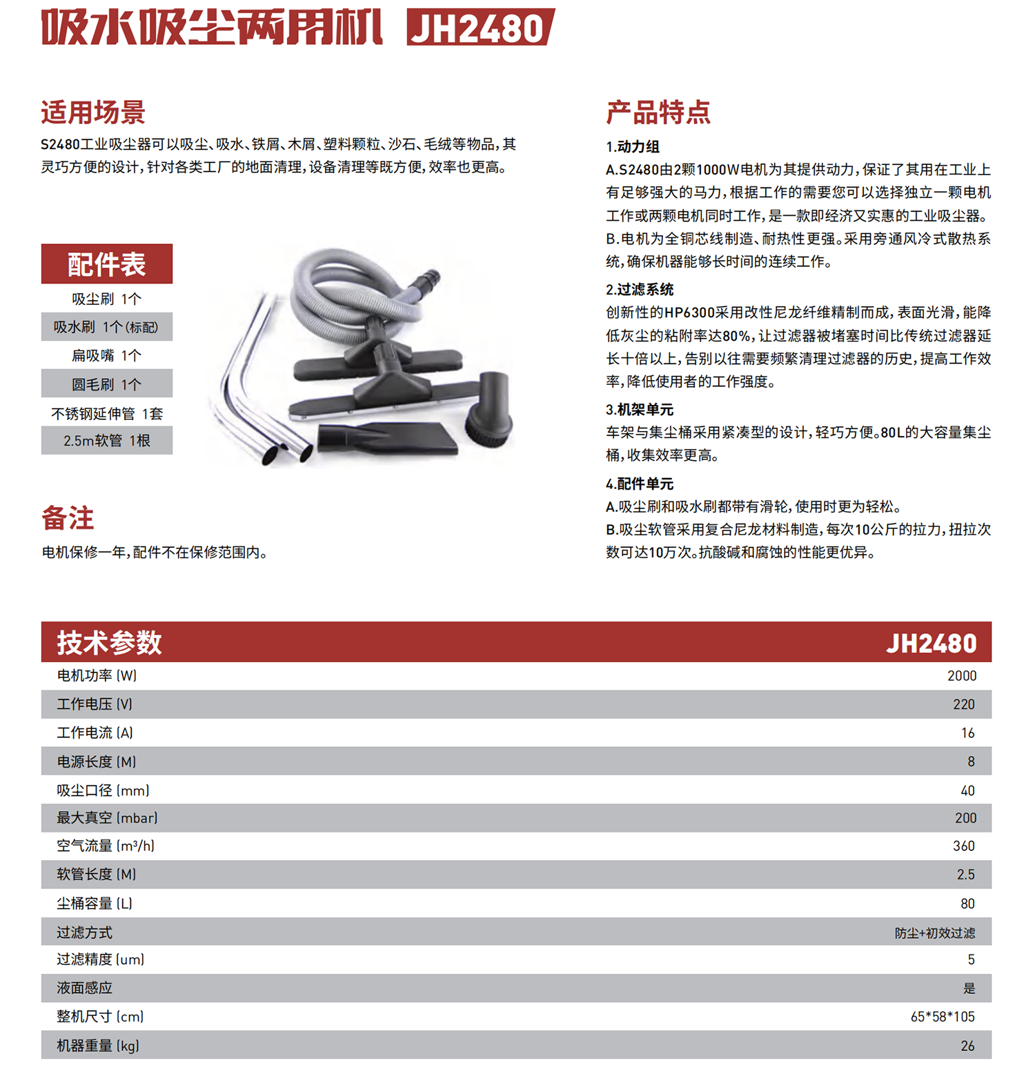 S2480工業(yè)吸塵器可以吸塵、吸水、鐵屑、木屑、塑料顆粒、沙石、毛絨等物品,其靈巧方便的設(shè)計,針對各類工廠的地面清理,設(shè)備清理等既方便,效率也更高。