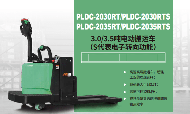 三菱叉車PLDC-2035RT 3.5噸電動搬運車高速高載搬運車,超強工況的理想選擇;載荷最大可到3.5T;高速可達12KM/H;雙托盤貨叉選配提供翻倍搬運效率高性能,高可靠∶交流風動系統,提供強勁動力;控制更精確,運行更平穩;高強度立式變速箱,超長工作壽命;低噪低故障液...